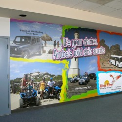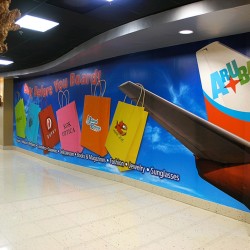 Turn any plain white wall into a vibrant billboard graphic. Think of it as a custom wallpaper in any size, shape or color. Essentially big “stickers” or decals, wall wraps and wall murals are as flexible as your business. The use of graphic imagery creates an exciting and visually stimulating environment for the consumer.